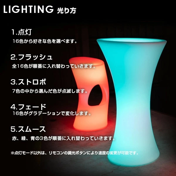 ※点灯モード以外は、リモコンの調光ボタンにより速度の変更が可能です。